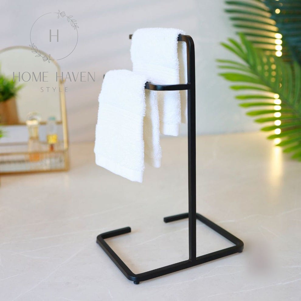 Elevate your bathroom aesthetic with our Towel Stands- Gold, Silver and black- to match with your interiors. Crafted with a minimalist design and durable powder-coated metal, this freestanding towel holder adds a contemporary edge to any countertop.